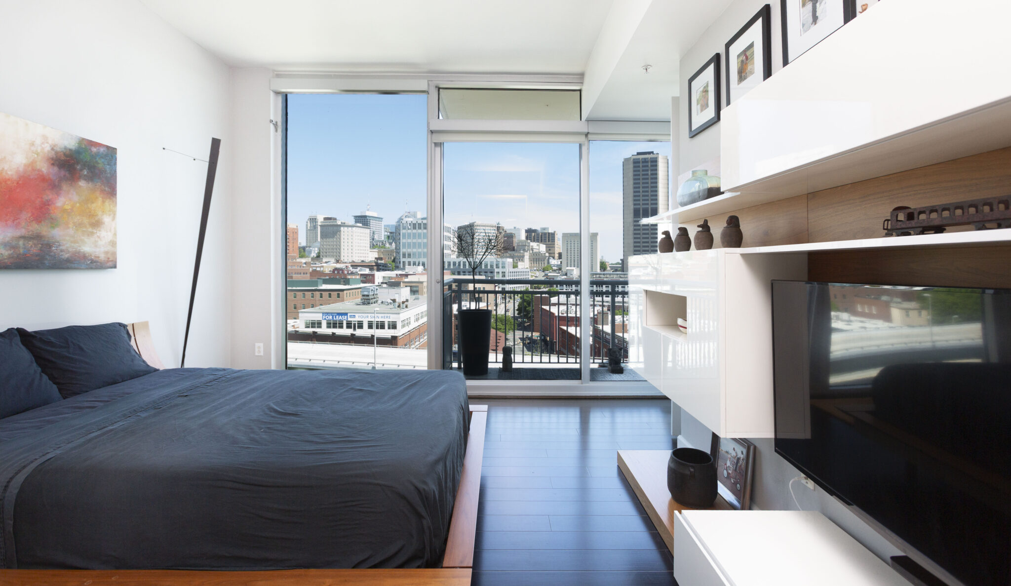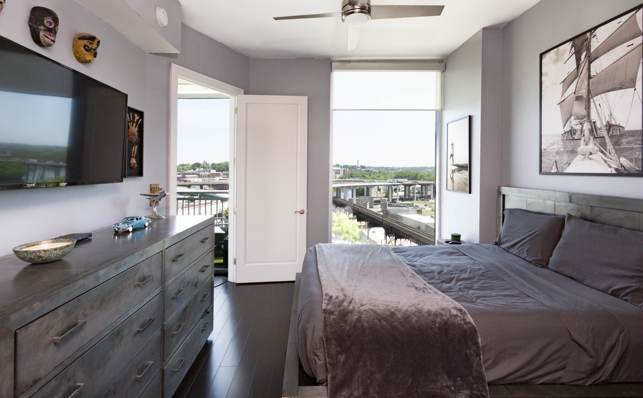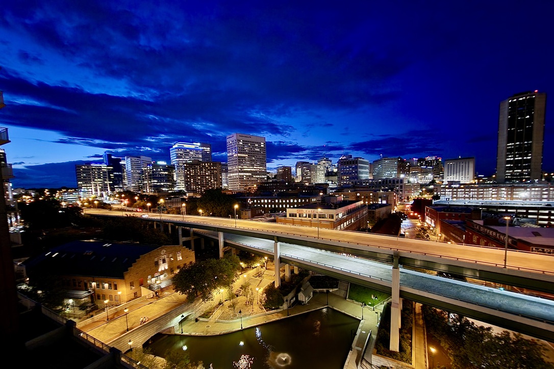 Downtown living at its best! This contemporary two bedroom condo yields uninterrupted stunning views with floor to ceiling windows. An open floor plan designed with generous living spaces, 10 ft ceilings, two balconies . The kitchen features granite counters, newer stainless appliances, cherry cabinets, island w/seating. A spacious primary suite features recently renovated inspired bath/closet combo with skyline views. The light-filled second bedroom has private bath access. Enjoy spectacular sunrises and dramatic downtown views. Watch the osprey and great blue heron fly by. New Heat Pump/Hot Water (2024). Two separate indoor parking spaces, 24 hr security/concierge, private club room, gym overlooking the Kanawha canal, plus internet/cable inc in monthly fee. Walk to restaurants, historic sites, shops. Plus Brown’s Island, T-Pot bridge, the James River park system, the Capital Trail and Allianz amphitheater are right outside your door!